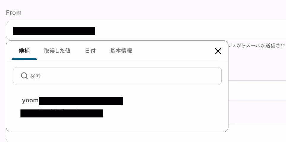 入力欄をクリックすると連携しているアカウントに紐づいた候補が表示されるので、候補から選択するか、使用するメールアドレスを手入力してくださいね!