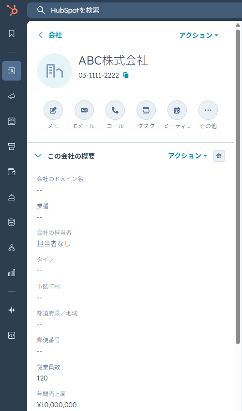 また、実際に会社が作成されるので、HubSpotを確認してみましょう!