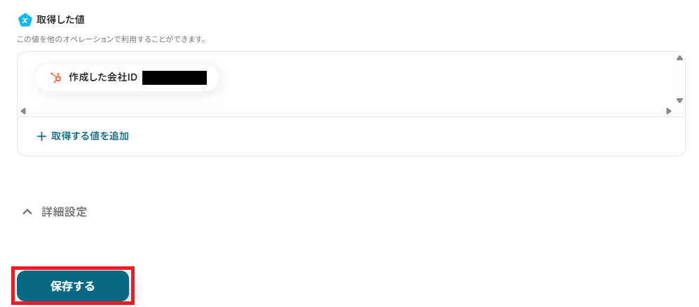 ステップ3で取得した情報を基に、HubSpotに会社を自動作成する設定をしていきます。