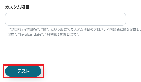 ここまで設定が完了したら連携テストを行います。テストボタンをクリックしましょう。