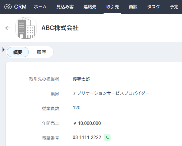 実際に取引先を作成する必要があるので、Zoho CRMで実行してみましょう。作成する内容は、架空の情報(「テスト会社」や「株式会社テスト」など)でOKです。