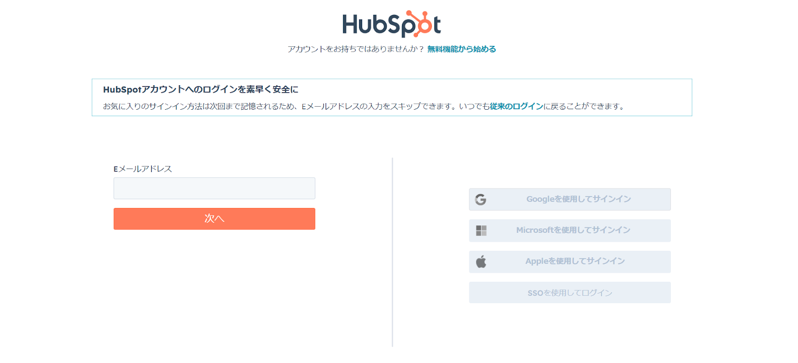 HubSpotのアイコンをクリックします。