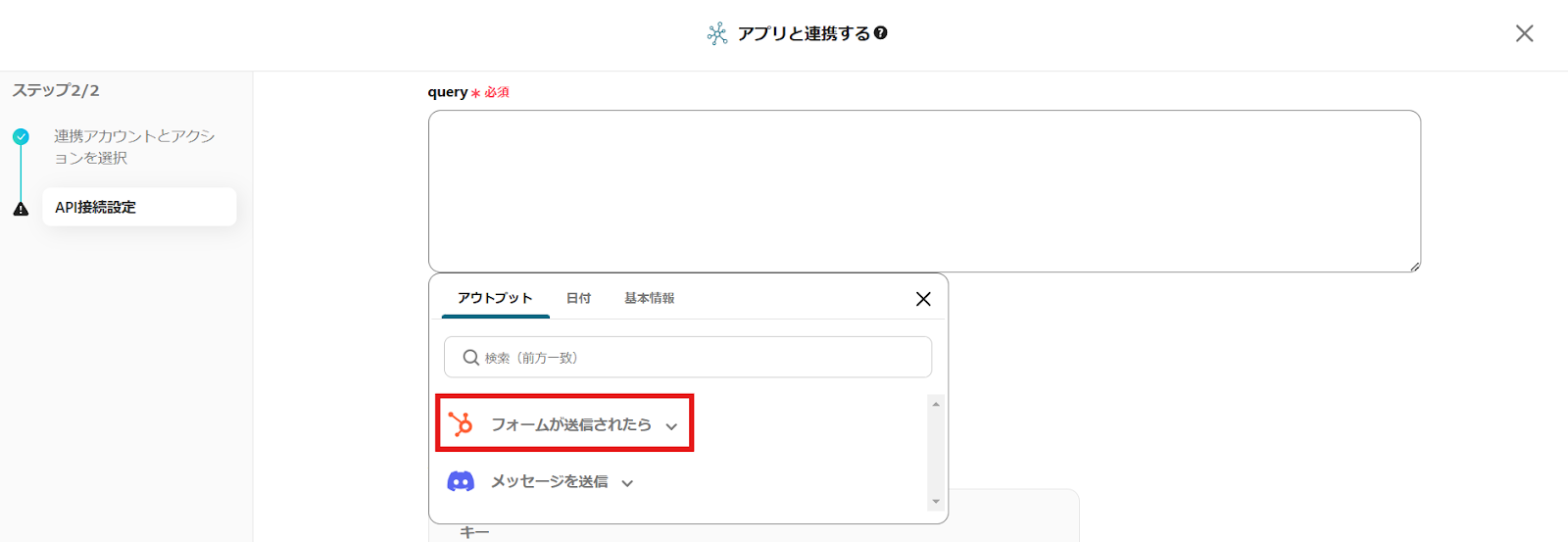 HubSpotの問い合わせデータが表示されるため、問い合わせ内容に等しいデータをクリックして挿入しましょう。