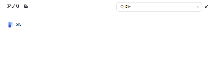 検索窓にDifyと入力し、表示された候補から「Dify」を選択します。