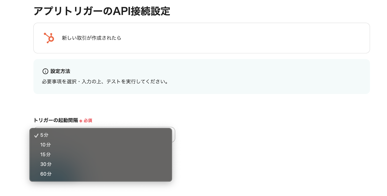 (1)まず、HubSpotのアプリトリガーを設定します。