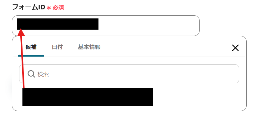3.「フォームID」は、入力欄をクリックして表示される候補から選択してください。