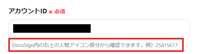 「アカウントID」は、入力欄下の説明に従って、入力してください。