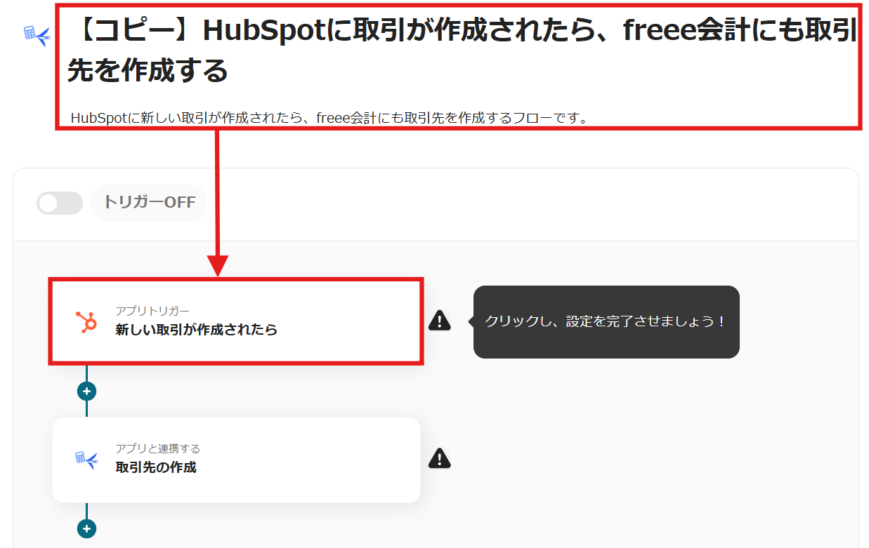 1.HubSpotからfreee会計に取引先を自動追加するフローです。