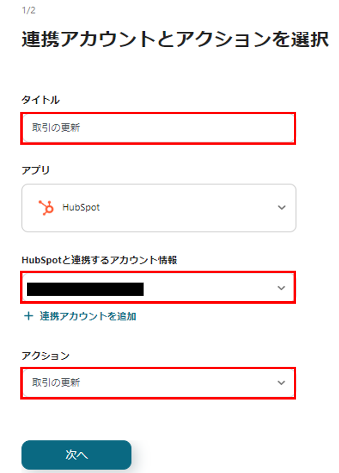 (3)HubSpotと連携するアカウント情報が正しいかを確認