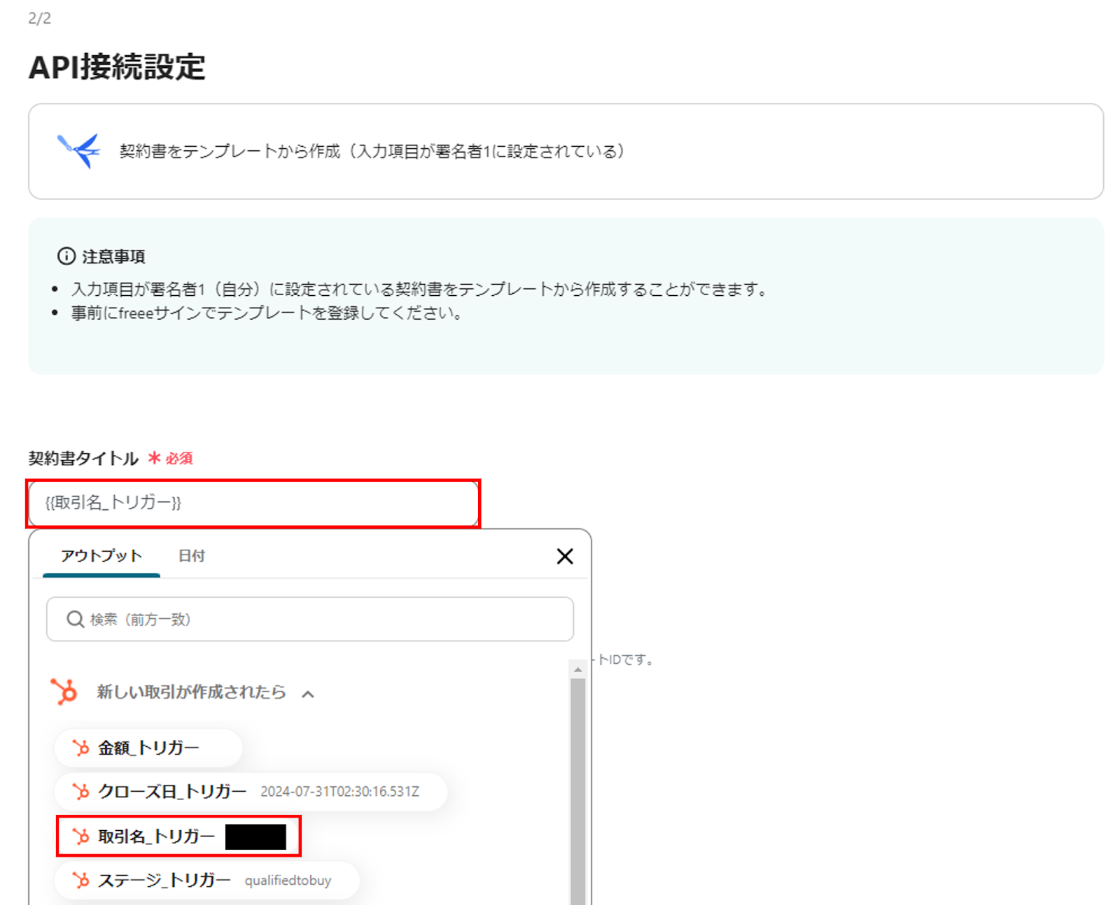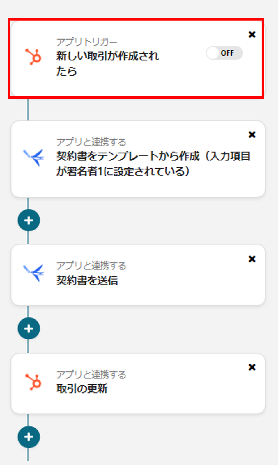 ここからは、「HubSpotで新しい取引が作成されたらfreeeサインで契約書を送付し、取引の情報を更新する」フローをご紹介します。