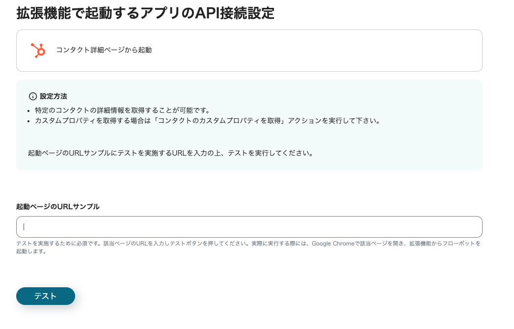 「起動ページのURLサンプル」に、テスト用のコンタクトページを入力してください。