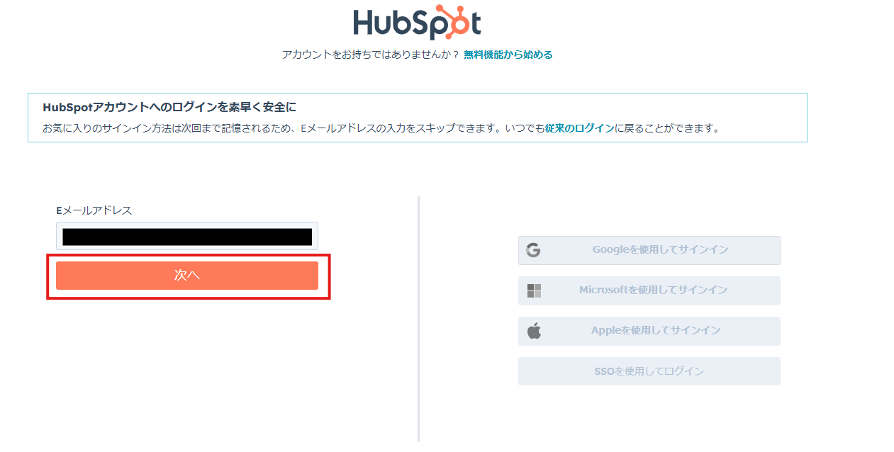 3.次の画面で、メールアドレスを入力し「次へ」をクリックしてください。