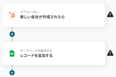※こちらの画面は、Yoomページ画面左側「マイプロジェクト」のフローボットで表示される、「【コピー】HubSpotで新しい会社が作成されたら、Google スプレッドシートに追加する」をクリックすると表示されます。