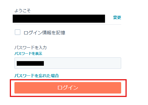 4.次の画面で、パスワードを入力し「ログイン」をクリックしてください。