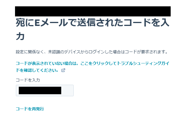 5.次の画面で、コードを入力してください。