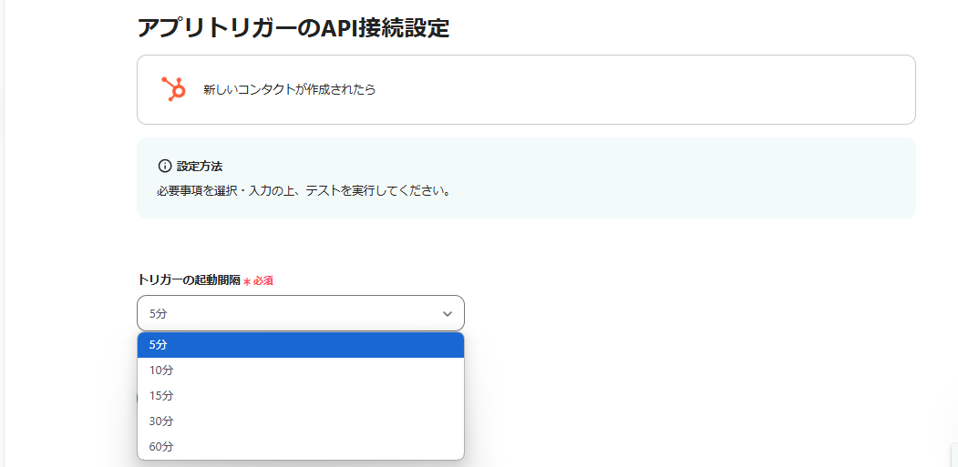 起動間隔を設定できたら、HubSpotにテスト用のコンタクトを作成してください。