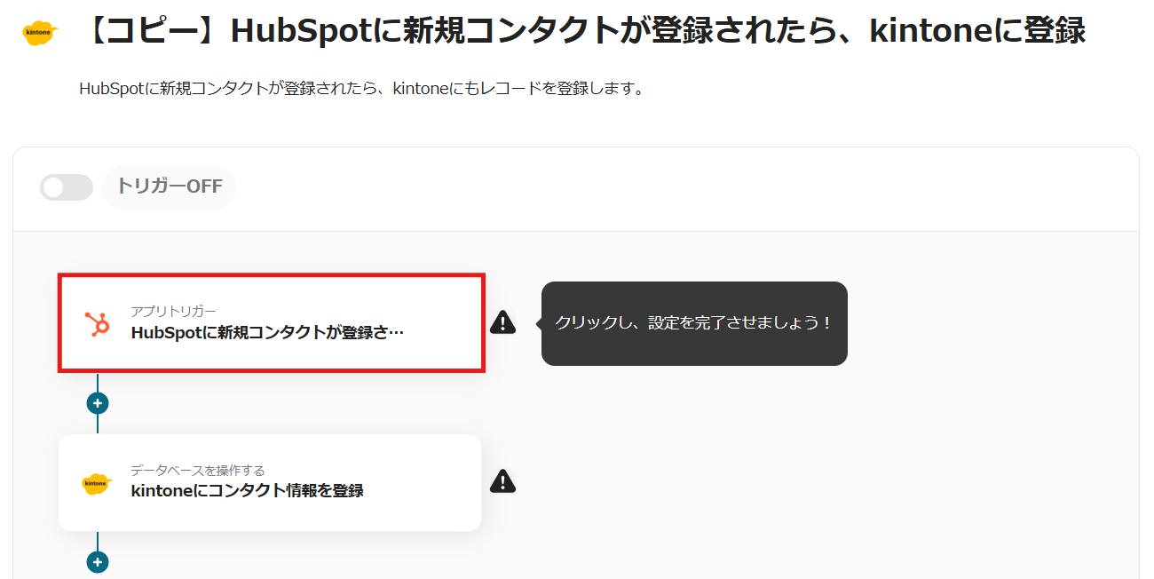 2.「アプリトリガー HubSpotに新規コンタクトが登録さ…」をクリックします。