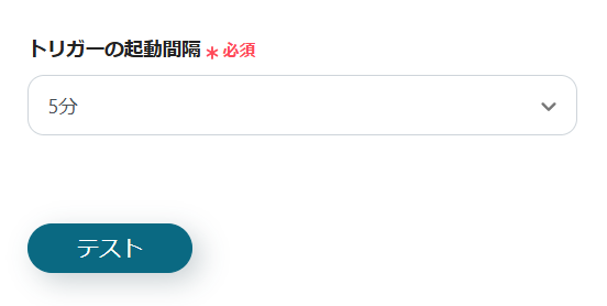 4.トリガーの起動間隔を設定し、「テスト」をクリックします。