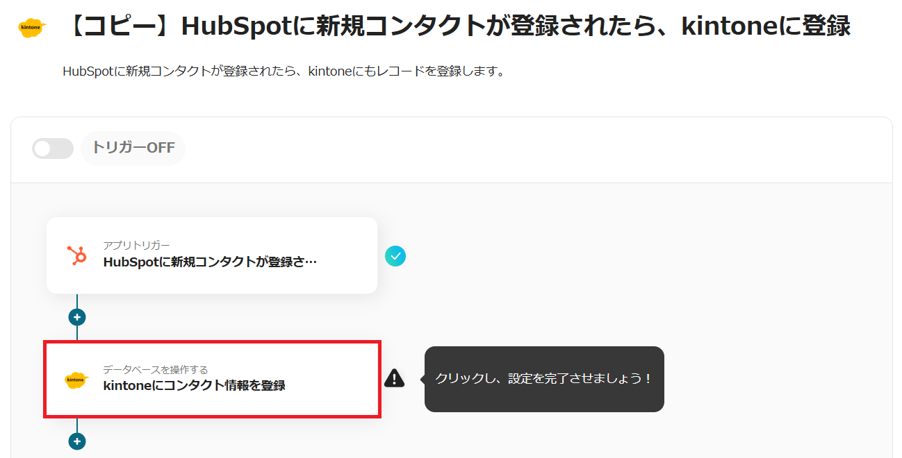 5.トリガーをONにすると、以降はHubSpotにコンタクトが登録されると、自動でkintoneにも登録されます。