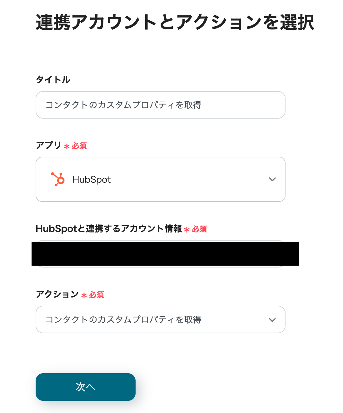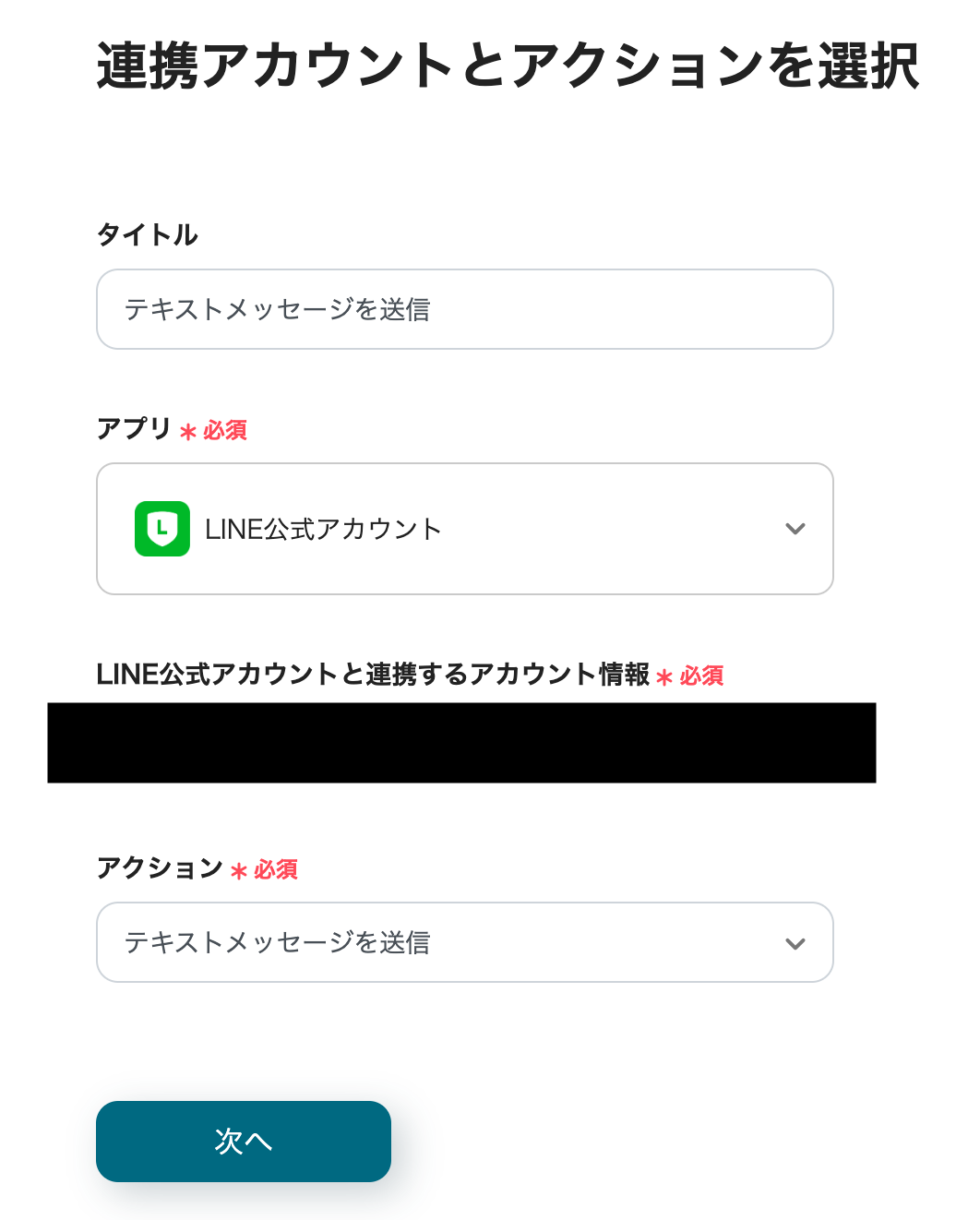 連携するアカウント情報を確認し、アクションはテンプレート通りのまま「次へ」をクリックして進んでください。