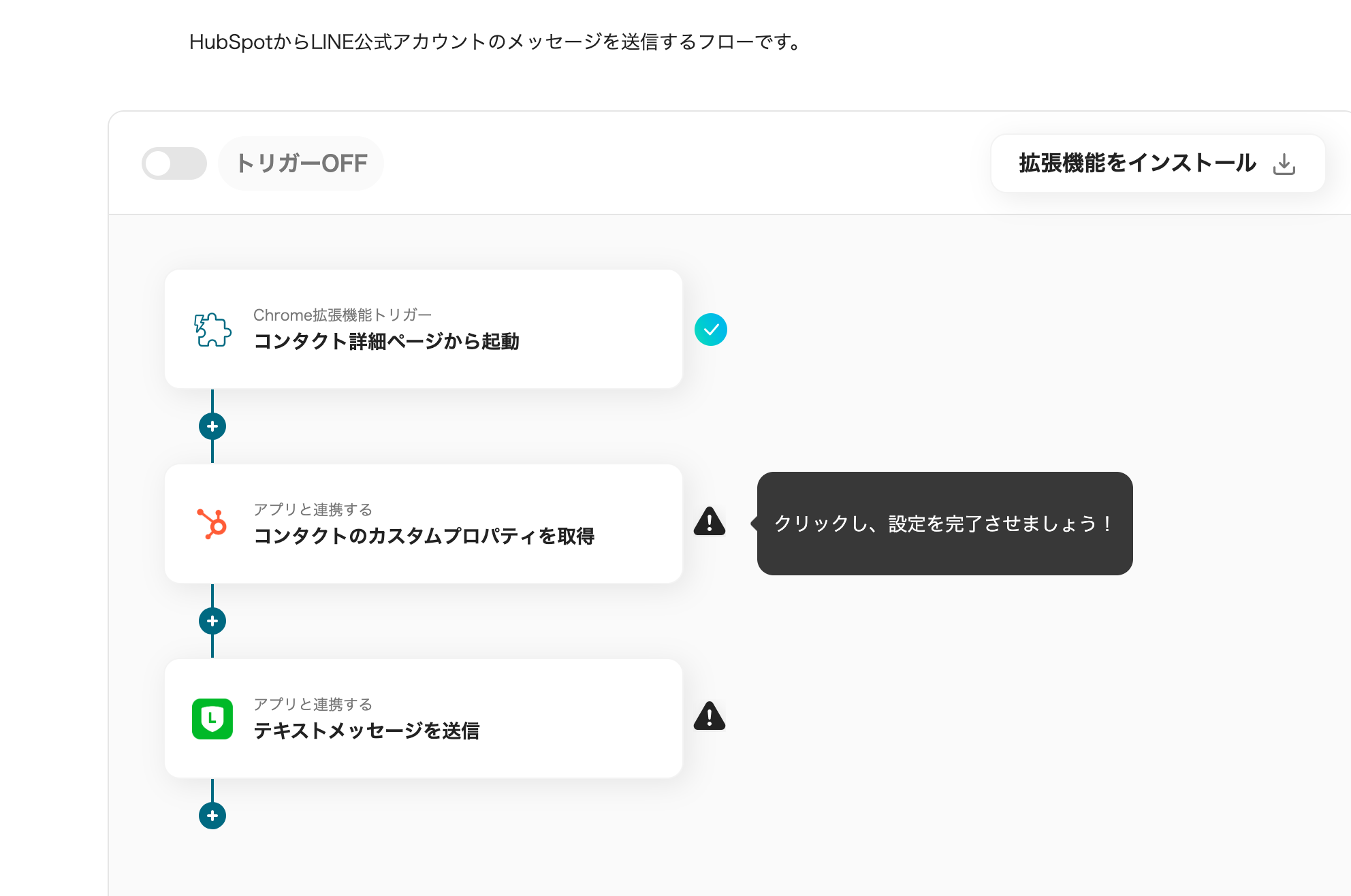 Chrome拡張機能を使用したトリガーを使用することで、HubSpot上から直接トリガーを起動させることができます。
