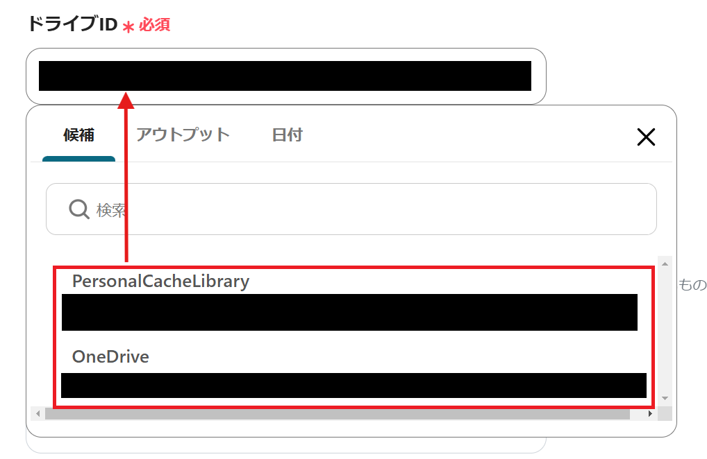 以下の画面が表示されたら、「ドライブID」を以下の赤枠から選択しましょう。