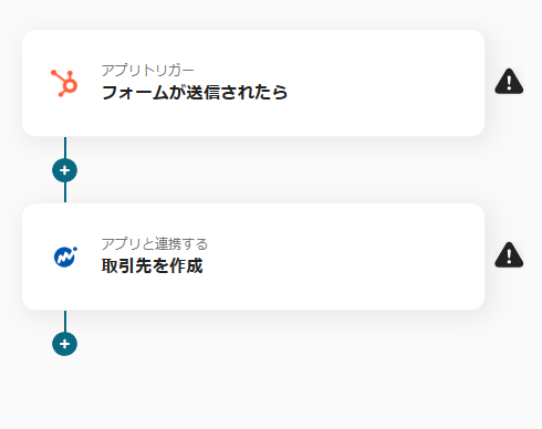 ※こちらの画面は、Yoomページ画面左側「マイプロジェクト」のフローボットで表示される、「【コピー】HubSpotのフォームで送信された取引先情報をマネーフォワードクラウド会計に登録する」をクリックすると表示されます。