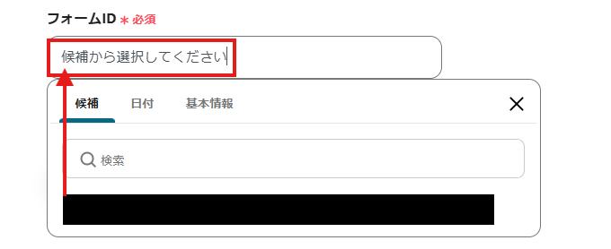 「フォームID」は、入力欄をクリックして表示される候補から選択してください。