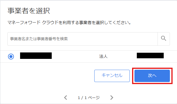 次に、事業者を選択し、「次へ」をクリックしてください。