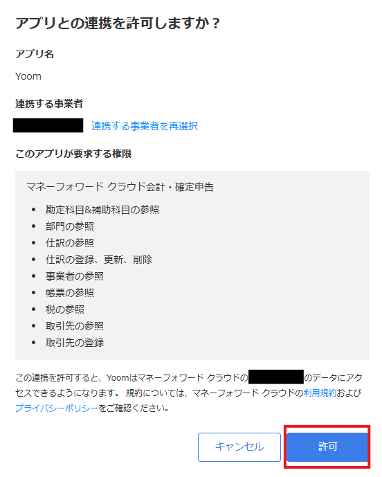 次の画面で、「許可」をクリックしてください。