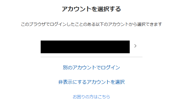 次の画面で、アカウントを選択します。
