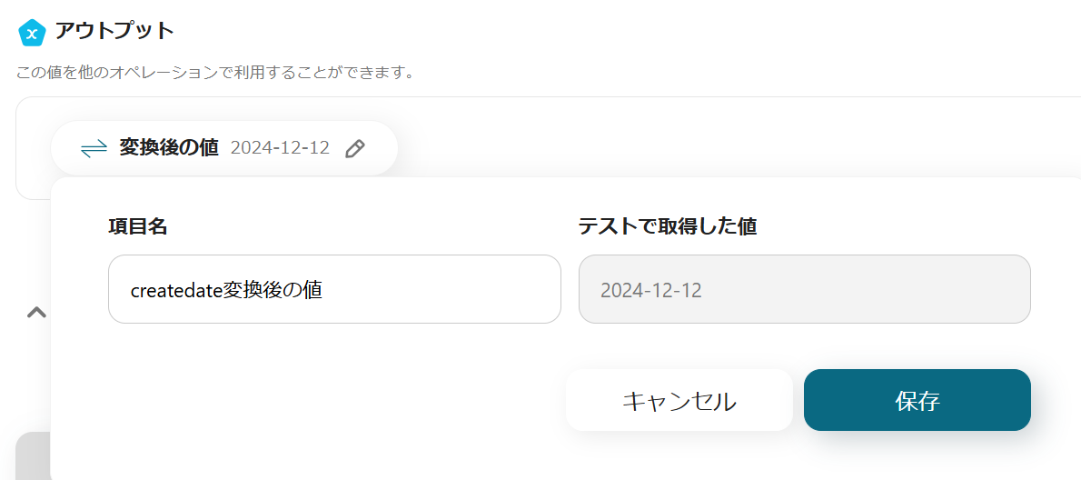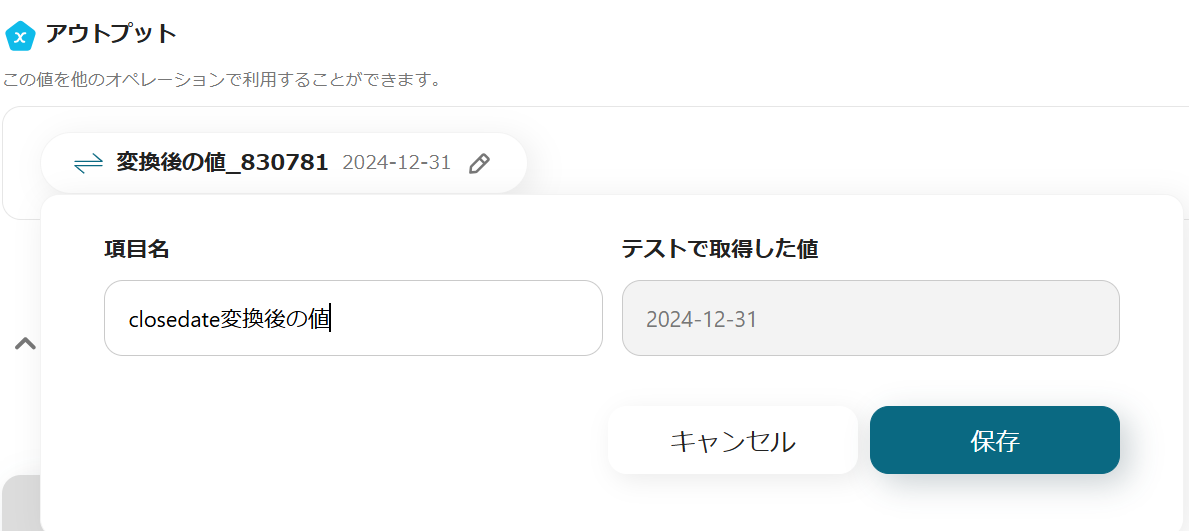 アウトプットにカーソルを合わせると項目名の編集ができます。