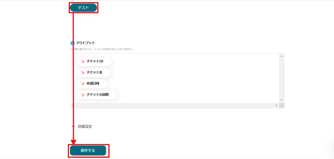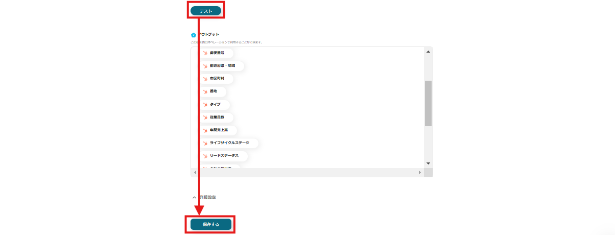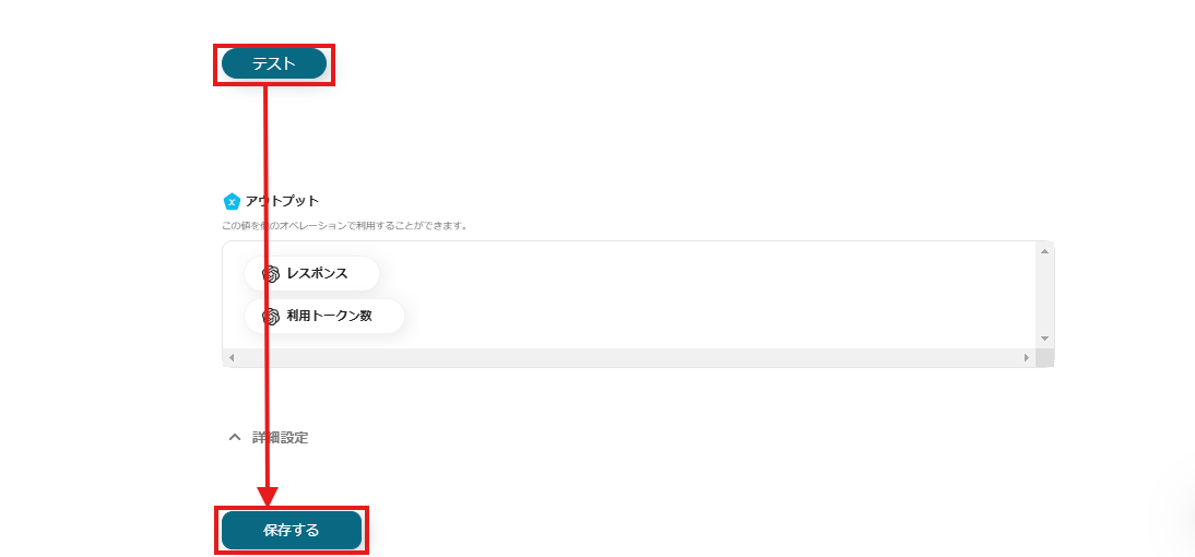 テストを行い、アウトプットが正しく取得されたら「保存する」をクリックしてください。
