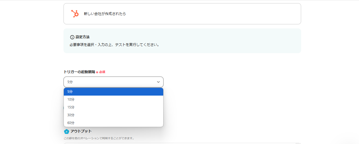 起動間隔を設定したら、HubSpotでテストに使用するための会社を登録してください。