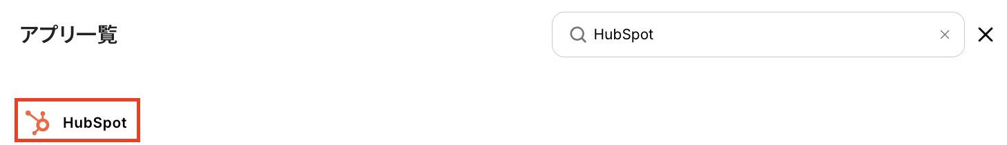 検索窓にHubSpotと入力し、表示された候補から選択します。