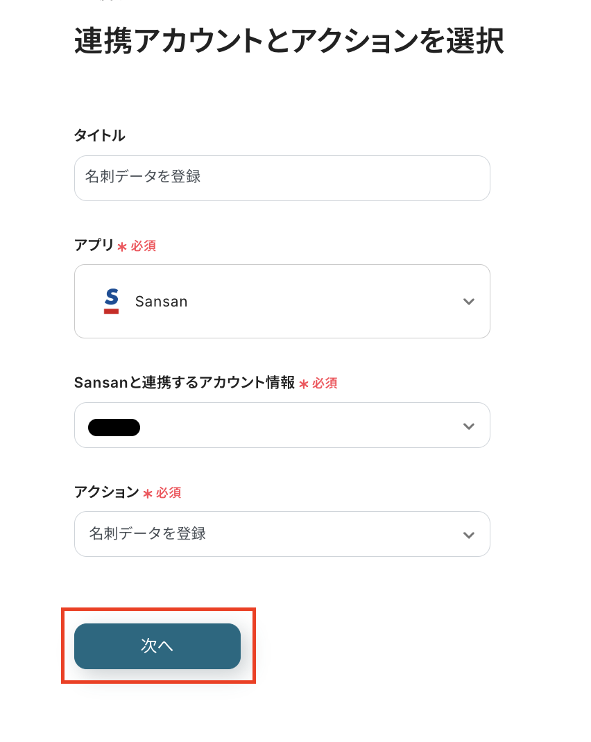 ステップ4:Sansanのアクション設定