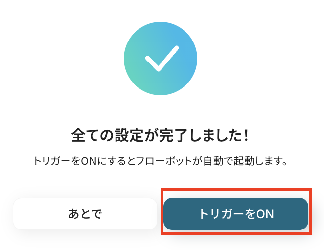 以上で全ての設定が完了しました!トリガーを「ON」にして、動作確認をしましょう。