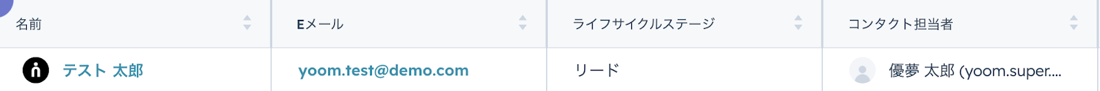 設定完了後、テストのため、実際にHubSpotにコンタクトを新規作成します。
