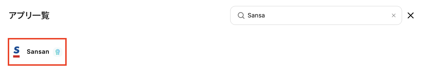 検索窓にSansanと入力し、表示された候補から選択します。