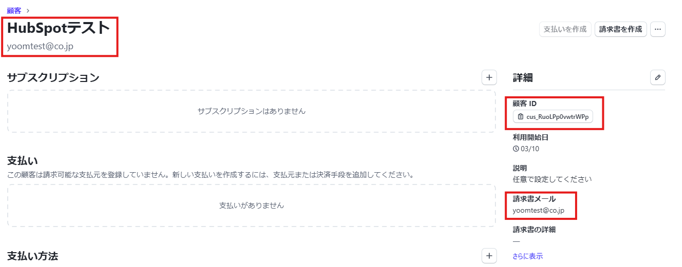 ※設定が成功したら、以下画像のようにStripeに顧客情報が登録されます。