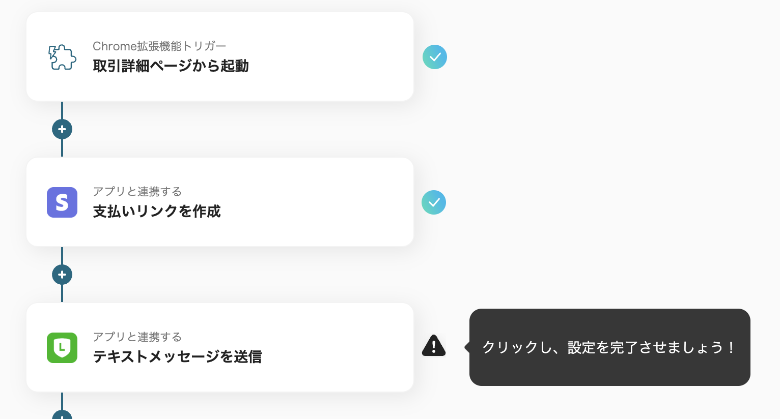 このフローを導入することで、HubSpotで管理している該当顧客の確認から支払い用リンクの生成、その内容をLINEで送信するプロセスが自動化されます。