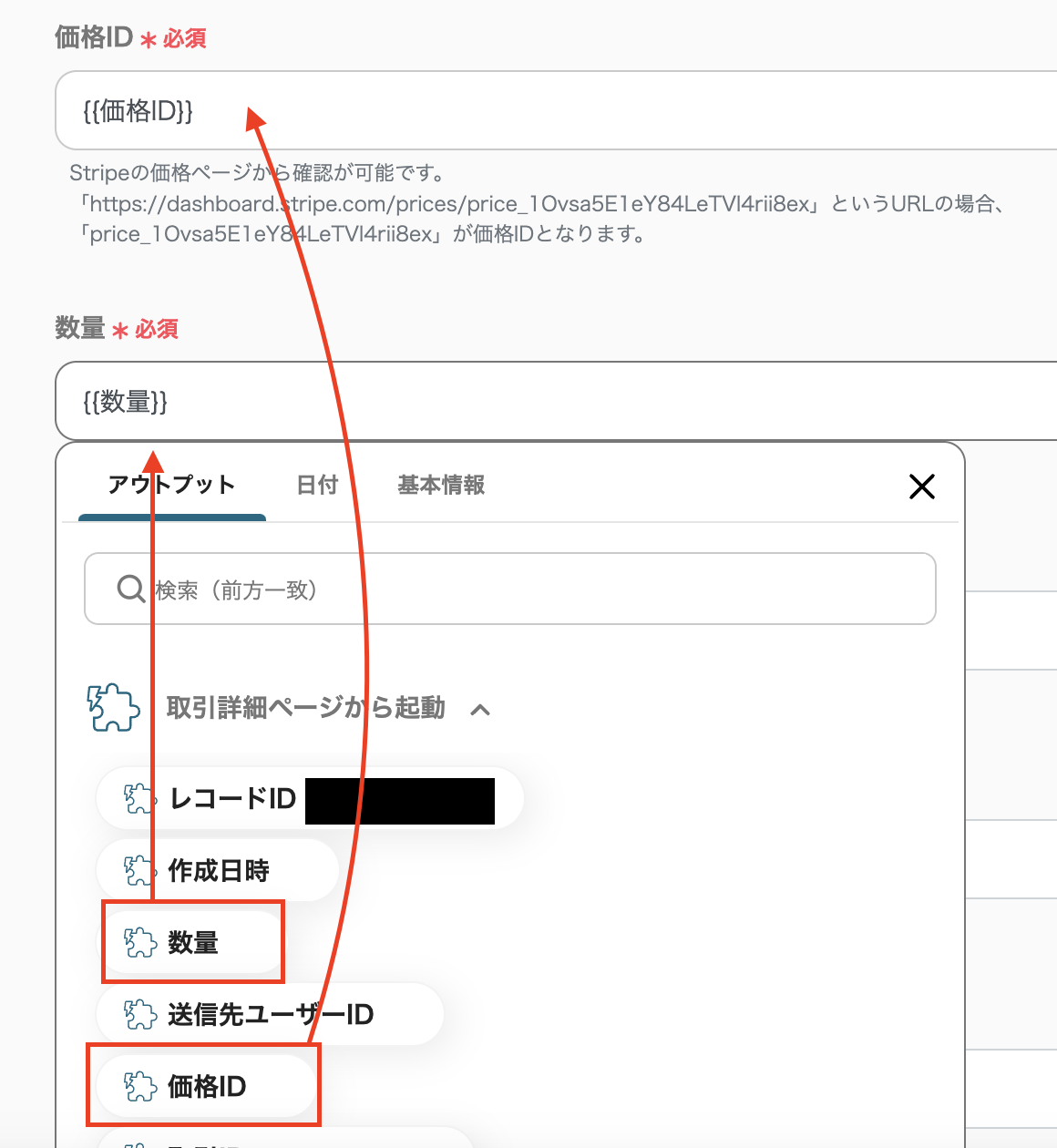 (3)次画面で「価格ID」や「数量」の項目を入力していきましょう。