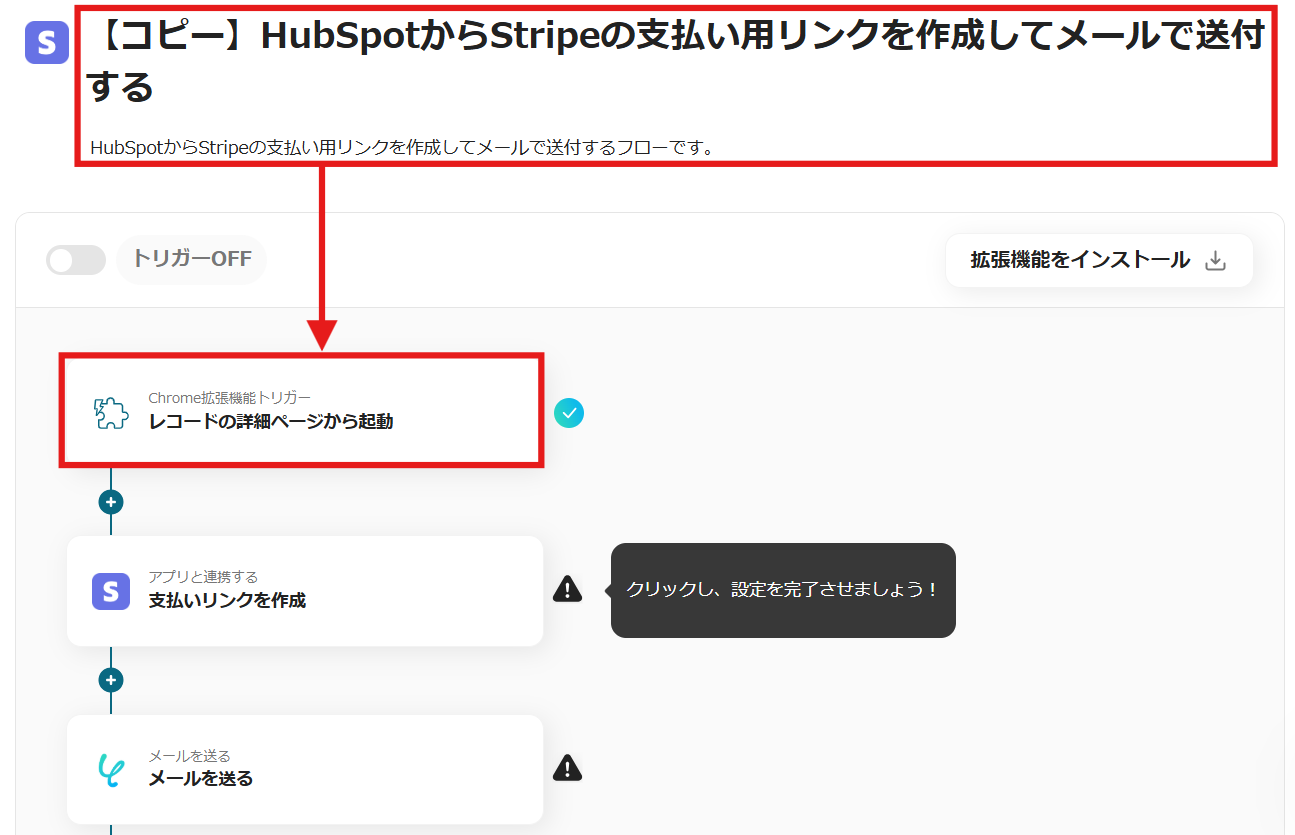 レコードの詳細ページから起動とStripeのアウトプットを活用して設定しましょう。