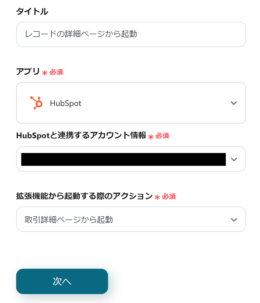 HubSpot上に支払い情報が事前に格納されている前提で設定を進めます。