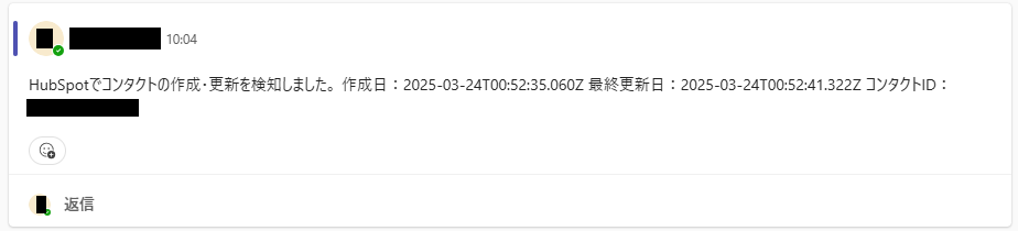 Microsoft Teamsで特定条件のメッセージが投稿されたらHubSpotにコンタクトを作成する