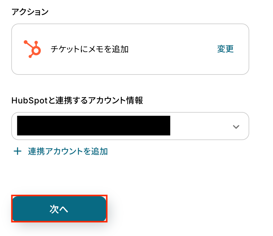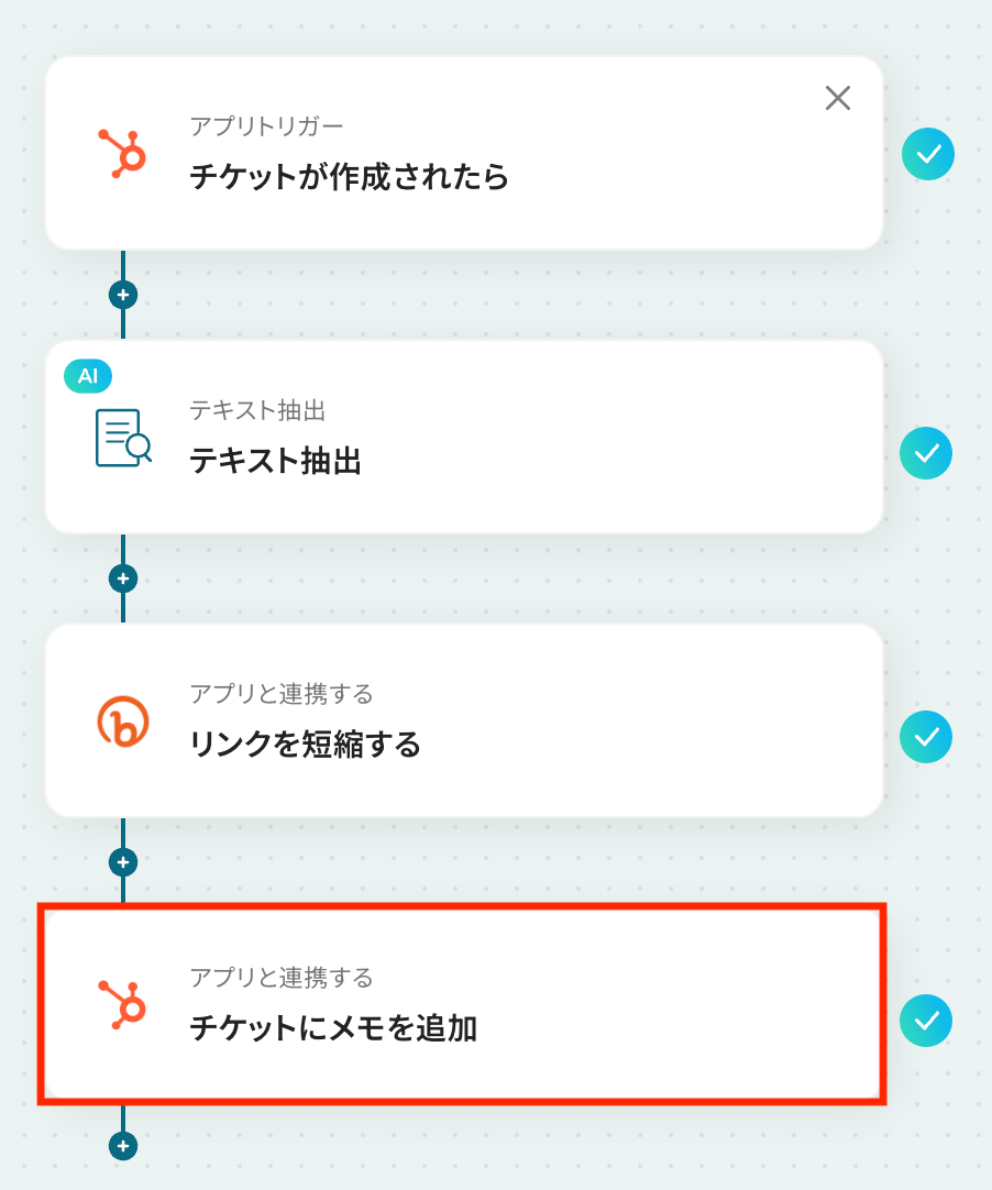 最後に、短縮したURLをHubSpotチケットのメモとして保存する設定を行います。