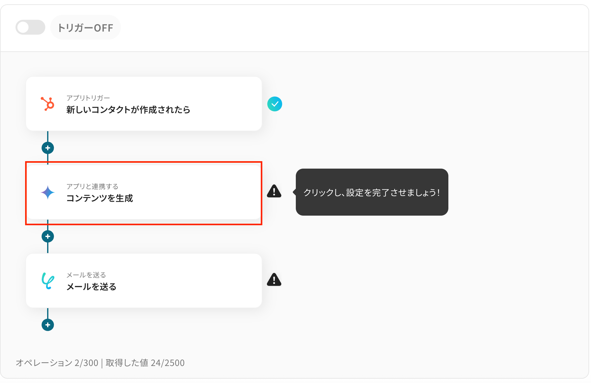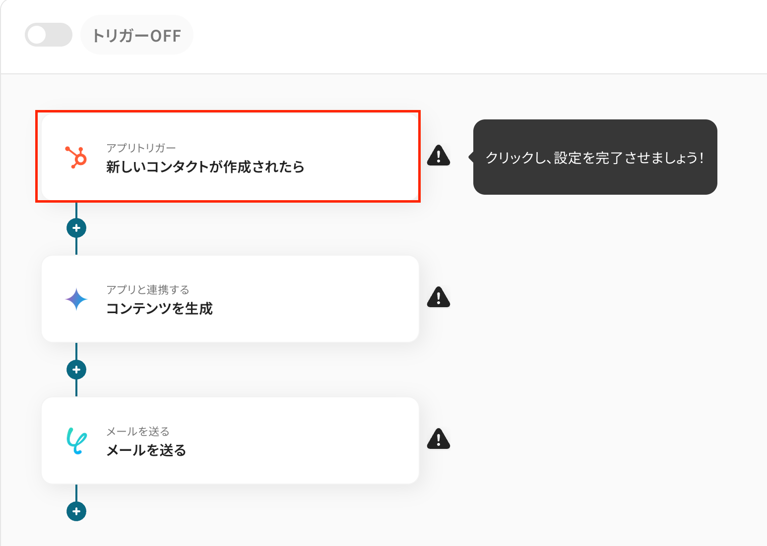 今回はHubSpotで新しいコンタクトが作成されたら、Geminiでフォローメールを生成するフローを作成していきます! 作成の流れは大きく分けて以下です。