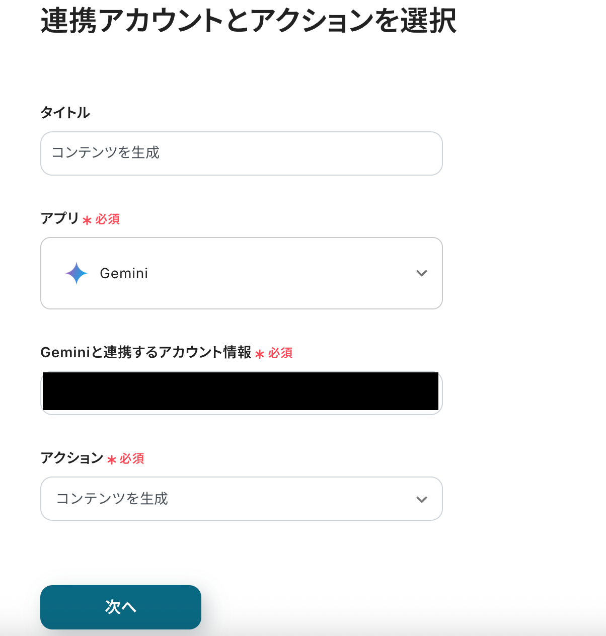 ステップ4:Geminiのアクションを設定しよう(コンテンツを生成)