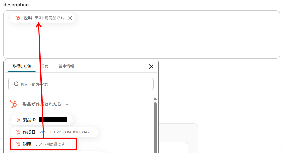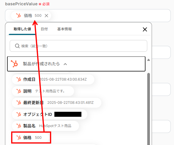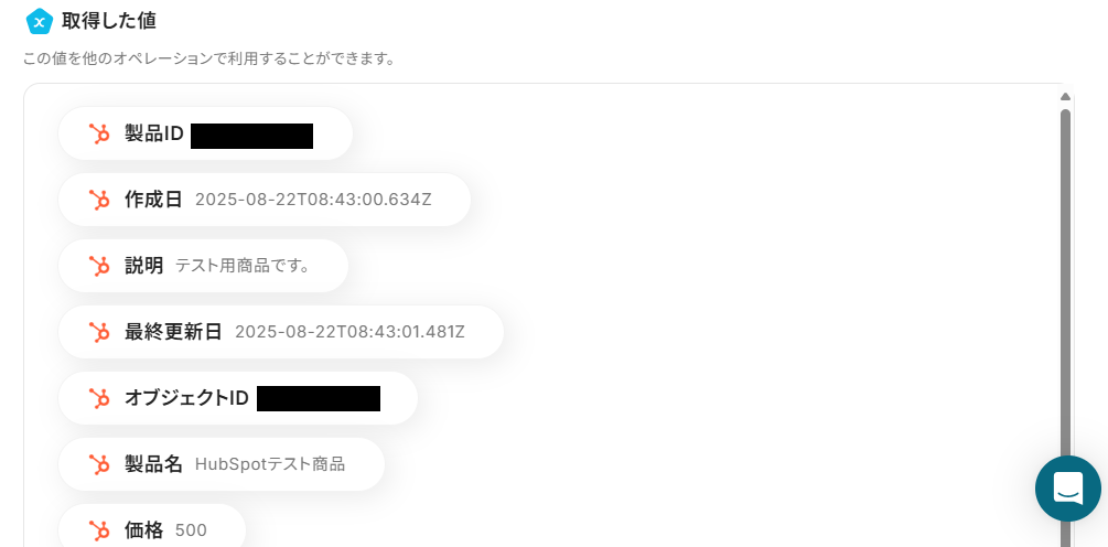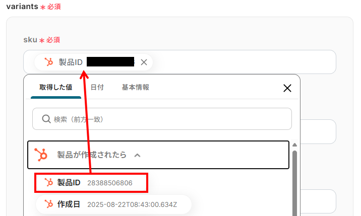 取得した値を設定することで、新しくHubSpotで製品が作成される度、新しい商品の情報がSquarespaceに連携されるようになります。