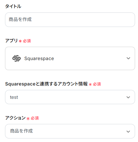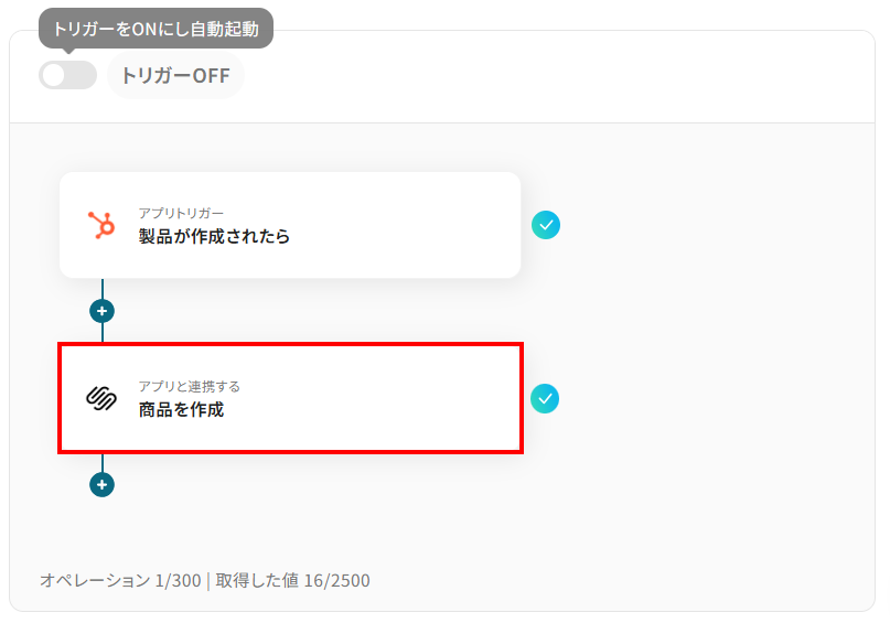 次に、先ほど取得したHubSpotのデータを使って、Squarespaceに商品を作成する設定をしましょう。